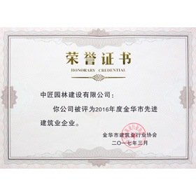金華市先進(jìn)建筑業(yè)企業(yè)