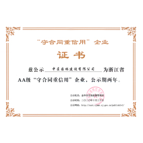 浙江省AA級(jí)“守合同重信用”企業(yè)