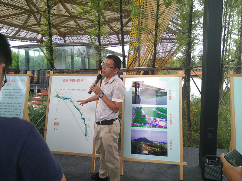 蘭溪市政管理處主任張正權(quán)在介紹蘭溪揚子江公園海綿城市建設(shè)成果