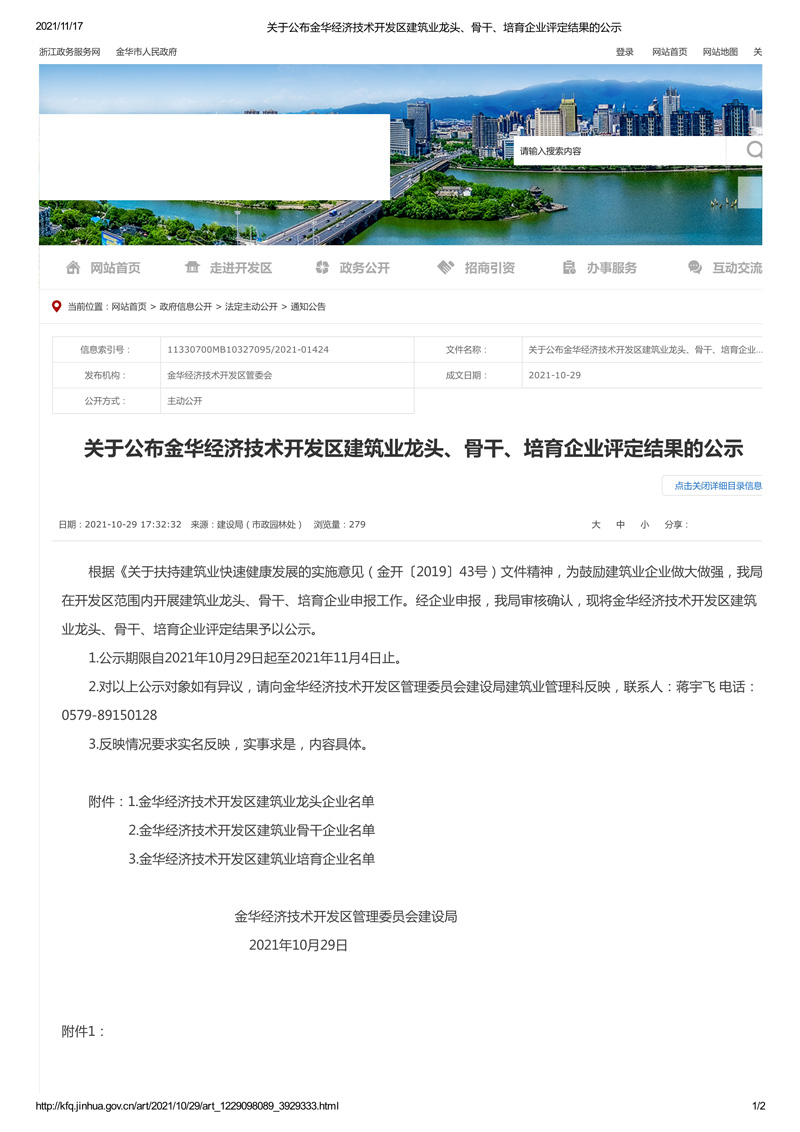 下一頁:關(guān)于公布金華經(jīng)濟技術(shù)開發(fā)區(qū)建筑業(yè)龍頭企業(yè)、骨干企業(yè)、培育企業(yè)認定結(jié)果的通知