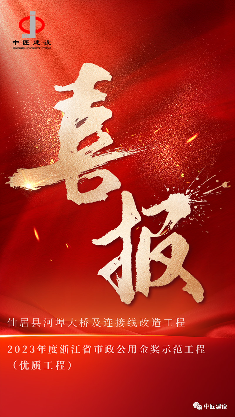 近日,中匠園林建設有限公司(以下簡稱“中匠建設”)承建的仙居縣河埠大橋及連接線改造工程,被浙江省市政行業(yè)協(xié)會高度認可,榮獲2023年度浙江省市政公用金獎示范工程(優(yōu)質(zhì)工程)榮譽。